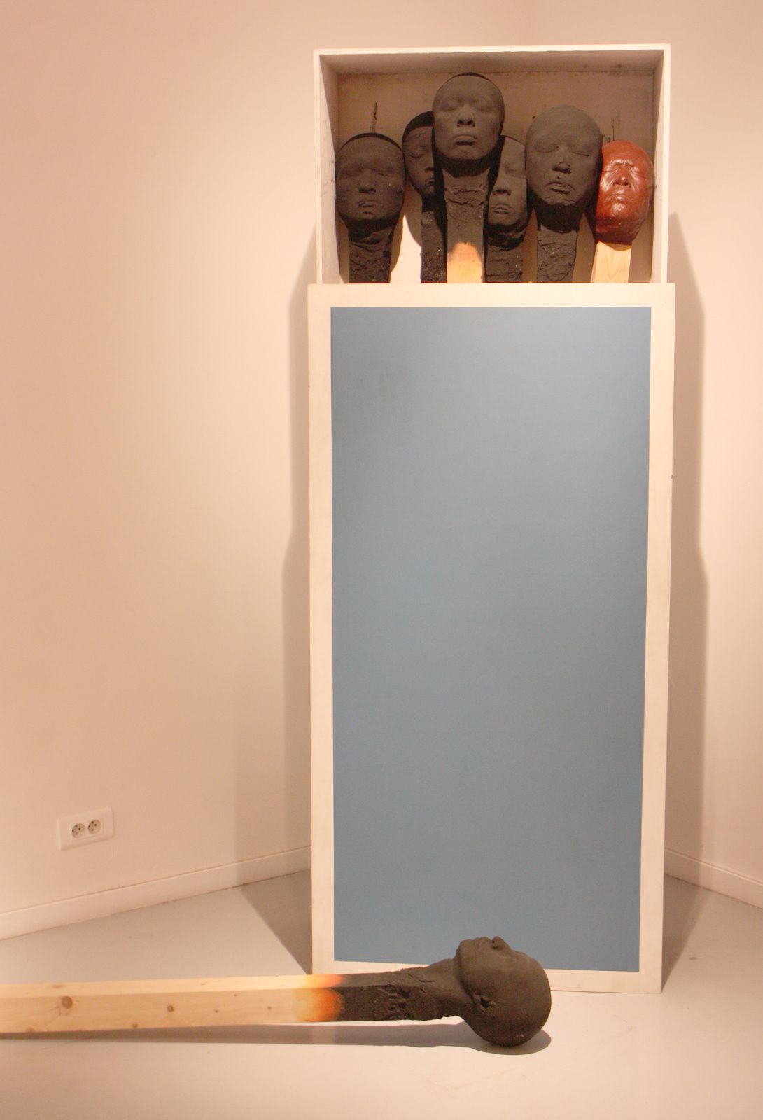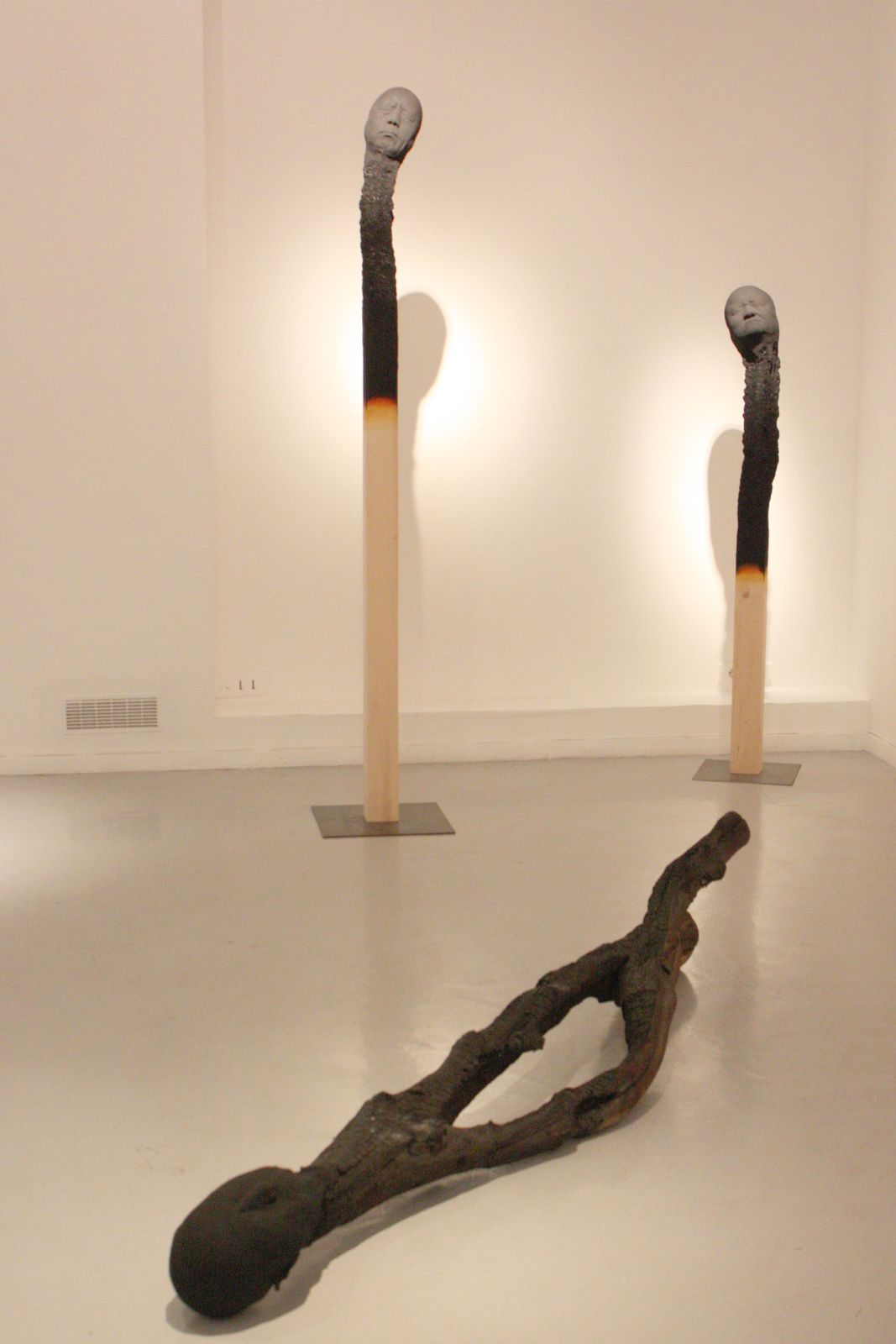 Les matchstickmen (hommes allumettes) dispersés dans un éparpillement aléatoire montrent une facette nouvelle de ses préoccupations. Il s'éloigne momentanément d'un concept d'évolution pour une réflexion, un questionnement politique, humain et moral. Pendant une période de sa vie, l'artiste a habité Pékin d'où il a rapporté des moulages de têtes utilisées pour un film. Associés à des bâtons de bambous d'une installation, ils sont devenus ces faciès orientaux sur piques.