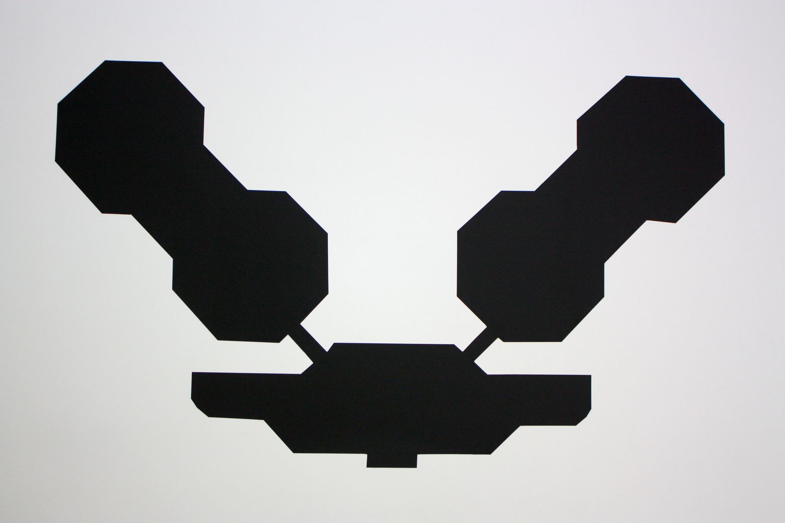 La peinture murale de Laure Tixier, Map with a View (2014), recèle une lecture double. La forme noire nous est inconnue, elle fait d’abord appel à des champs symboliques liés à l’ésotérisme, l’astrologie ou une forme d’écriture ancienne. Elle se révèle être le plan d’une prison. L’imaginaire porte au fantasme, tandis que le réel ramène au contrôle et à l’autorité.