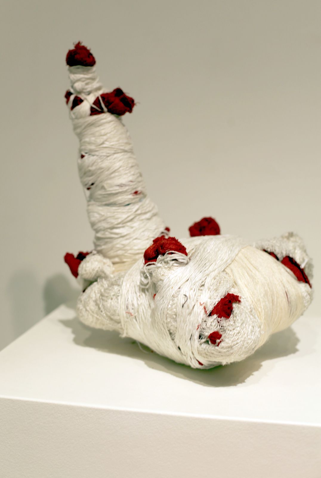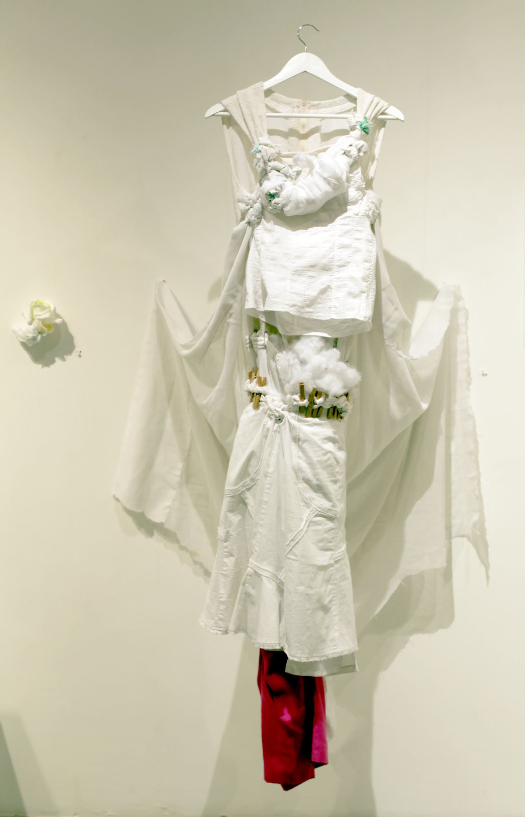 Depuis 10 ans, la création de Pascal Tassini n’est plus que textile, oscillant entre la confection de vêtement robes de mariée, coiffes, l’habillage de sa cabane ou les emballages d’objets comme le faisait Judith Scott.