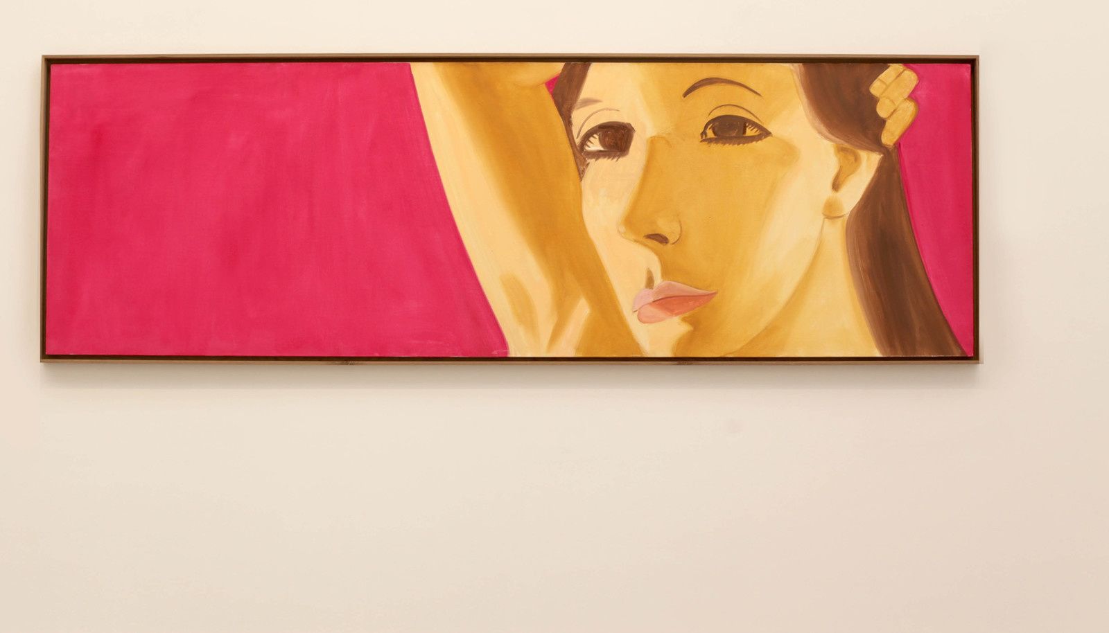 Le fond rouge des toiles présentées dans l’exposition rappelle celui de l'une de ses premières peintures, le célèbre Red Smile (1963, Whitney Museum of American Art, New York), portrait monumental d'Ada, sa femme et sa muse. Dans ce tableau d’où se dégage un fort sentiment de séduction, le rouge à lèvres qui souligne le sourire d’Ada se détache sur une surface monochrome elle-même rouge.