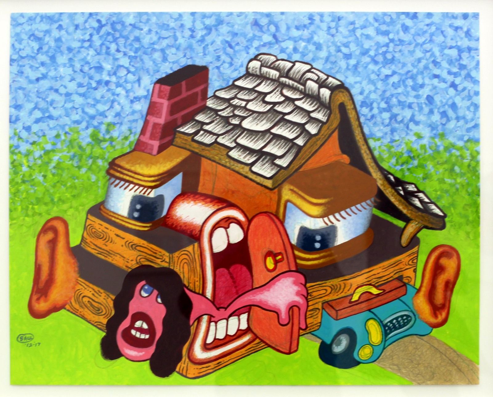 Il se passe plein de choses dans la peinture de l’américain Peter Saul : on y trouve des blagues douteuses aux couleurs flashy, des frigos et Ronald Reagan, du Yankee trash et des chiens de riches, un Superman aux toilettes, BANZAI, Mickey à l’assaut des « Japs » ou un « MadDocter » en train d’ourdir des complots diaboliques. Avec une exubérance certaine, il nous montre le monde tel qu’il est : désordonné et chaotique.